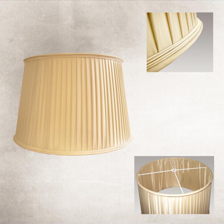 Abat-jour 60 cm pour lampadaire client, plissé fronces en soie dorée, doublure écru avec .